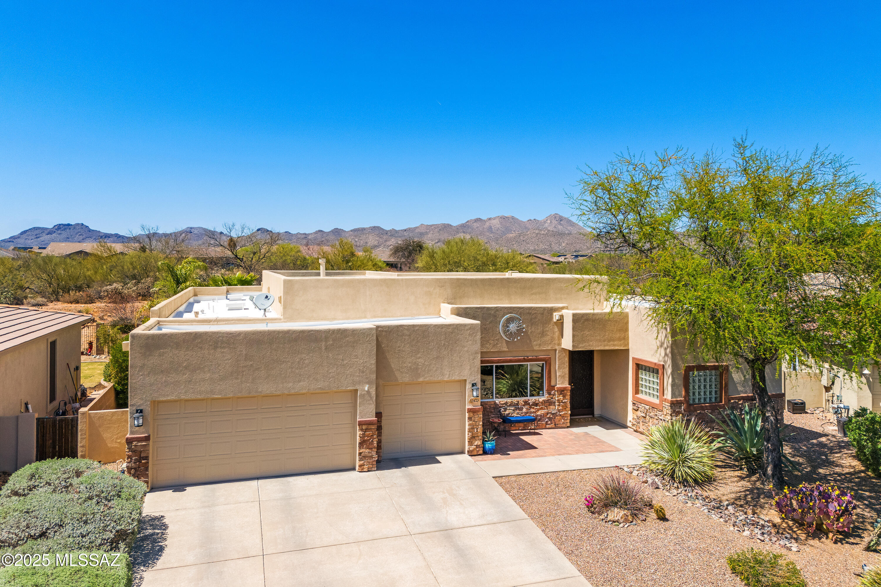 Stunning 2,735sf semi-custom home on a cul-de-sac lot in the desirable Stone Terrace Rancho Vistoso community in Oro Valley. Backing onto the Vistoso Trails Nature Preserve with no rear neighbors, this 4BR/3BA single-level home has breathtaking Catalina Mountain views and a solar-heated pebble-tec pool with in-floor cleaning system. Close Proximity to Innovation Academy (K-5), Leman Academy & Basis Oro Valley Schools. Spacious kitchen features ample cabinetry, Corian countertops, stylish tile backsplash & built-in desk, seamlessly flowing into the inviting family room and casual dining nook. Luxurious primary suite has two walk-in closets & beautifully updated bathroom w/soaking tub & oversized shower w/rain head & pebble rock flooring (2022). Outdoor living is a dream with covered patio, planters, new artificial turf (2021), dog run & built-in BBQ perfect for gatherings.